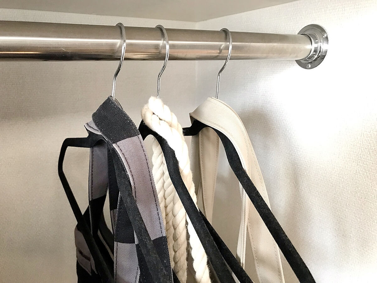 畳むと折りシワがついてしまうキャンパス地のバッグは、吊るして収納すると場所も取らず出し入れもラク!