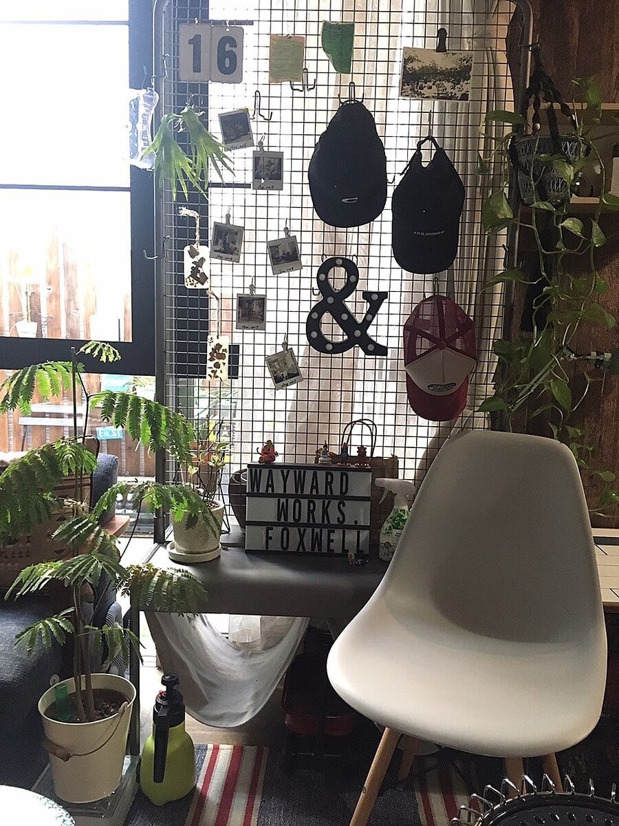 パーテーションに鉢植えを飾ったり、プラントハンガーにハンギングしたり、所々にグリーンを取り入れてグリーンのある暮らしを楽しみながら、心地よい空間づくりをしています。