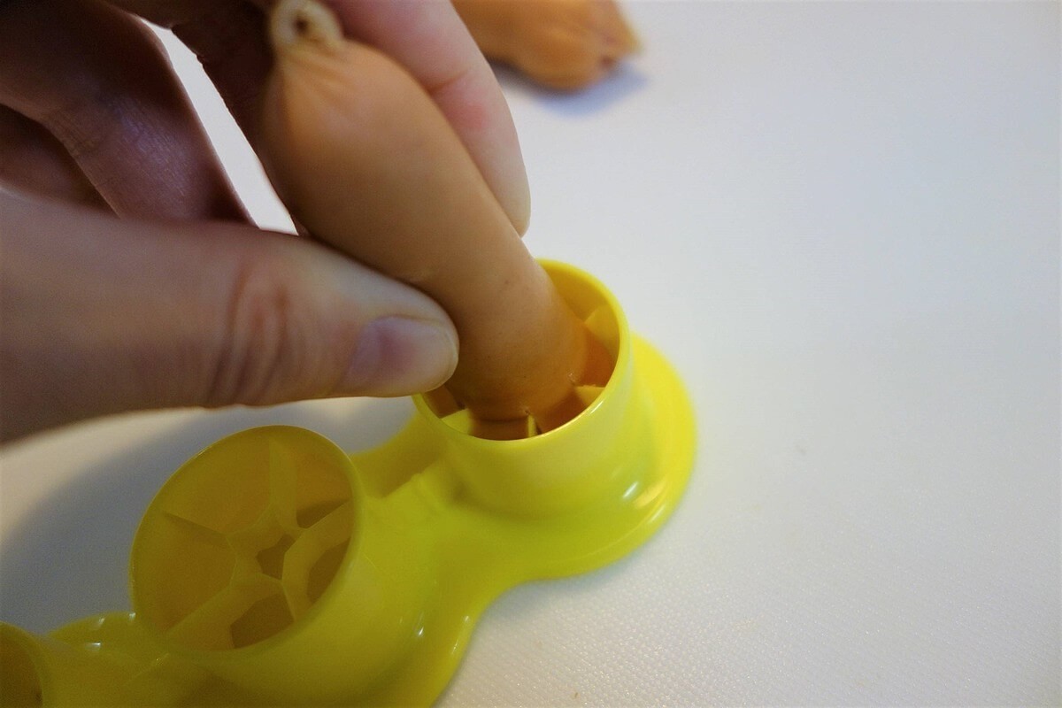 真ん中の花型カッターは、ウィンナーを半分にカットしてから使います。