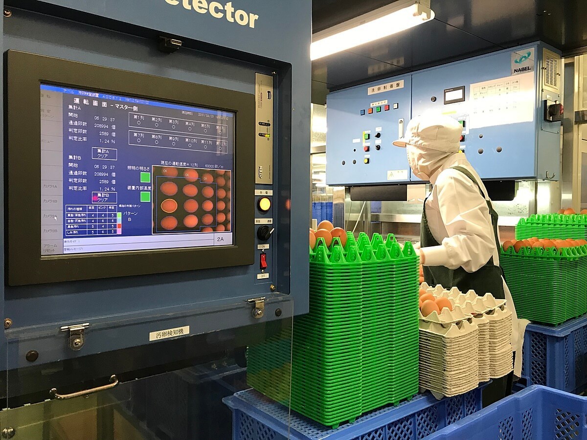 さらに、人の目では気付かない汚れや割れ、それ以外に、卵の中の状態を機械で判別できるようになっています。さすが最新鋭の技術!
