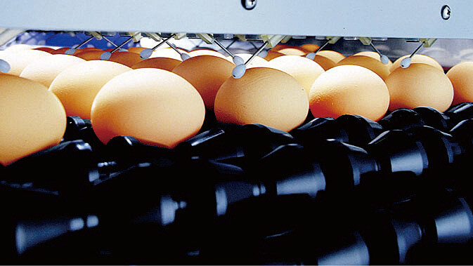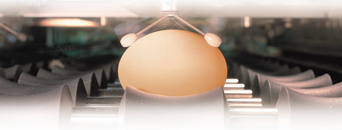 まずは、基準温度40〜50℃の洗卵水でしっかりと洗い、殺菌消毒を徹底した状態で卵を乾燥させます。
