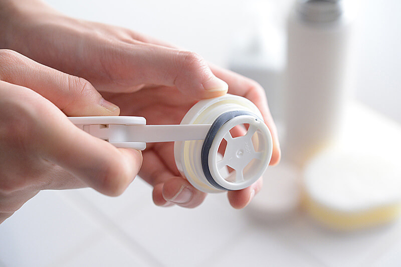 どんなに台所スポンジの先っちょでゴシゴシしても取りきれない、飲み口パーツやパッキン周りの汚れ。