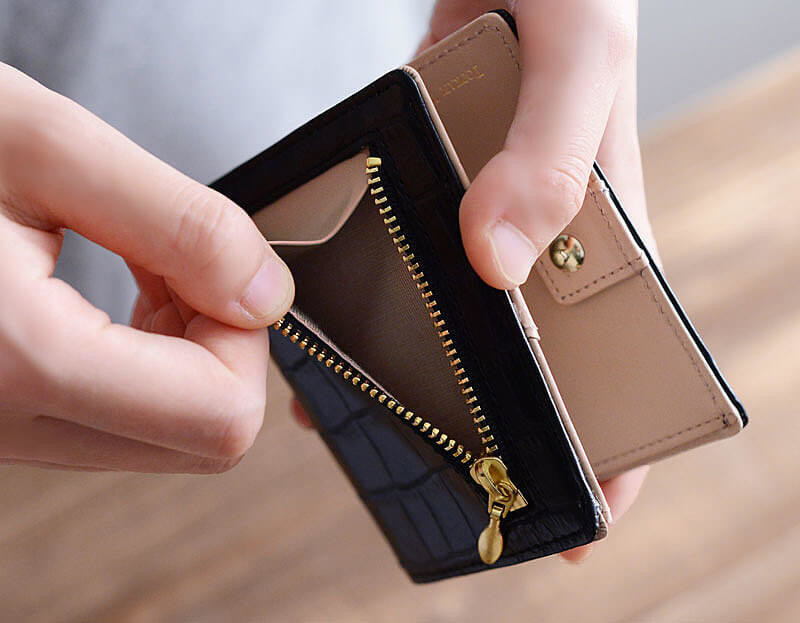 小さいながらも紙幣を折り畳まず入れられたり、小銭用ファスナーポケットが付いていたりと、必要な機能は全て備えています。