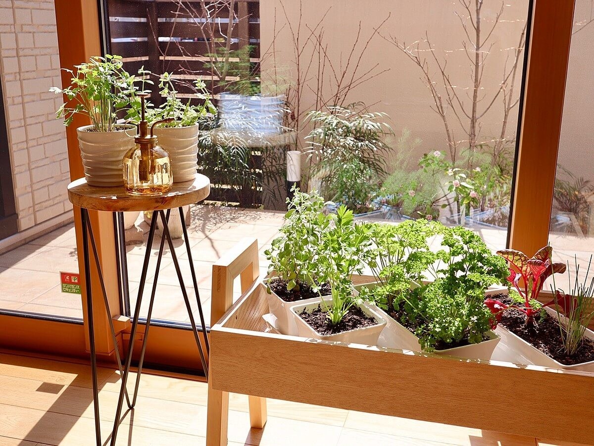観葉植物を置くのも素敵ですが、ハーブの鉢を置くと暮らしがぐんと広がります。