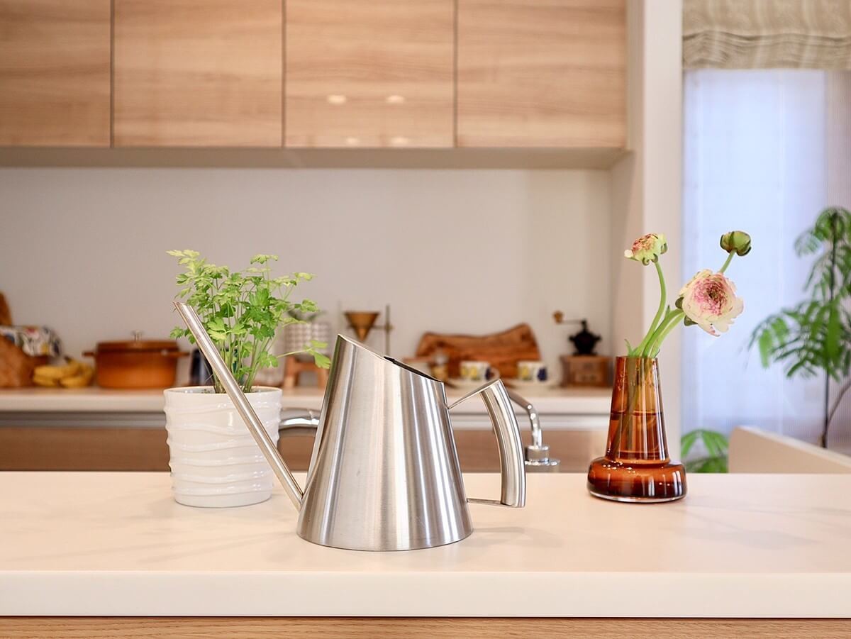 室内の植物に水をあげるとき、葉にかかってしまうと床に水が滴るので、根元にあげられるジョーロがあるととても便利!