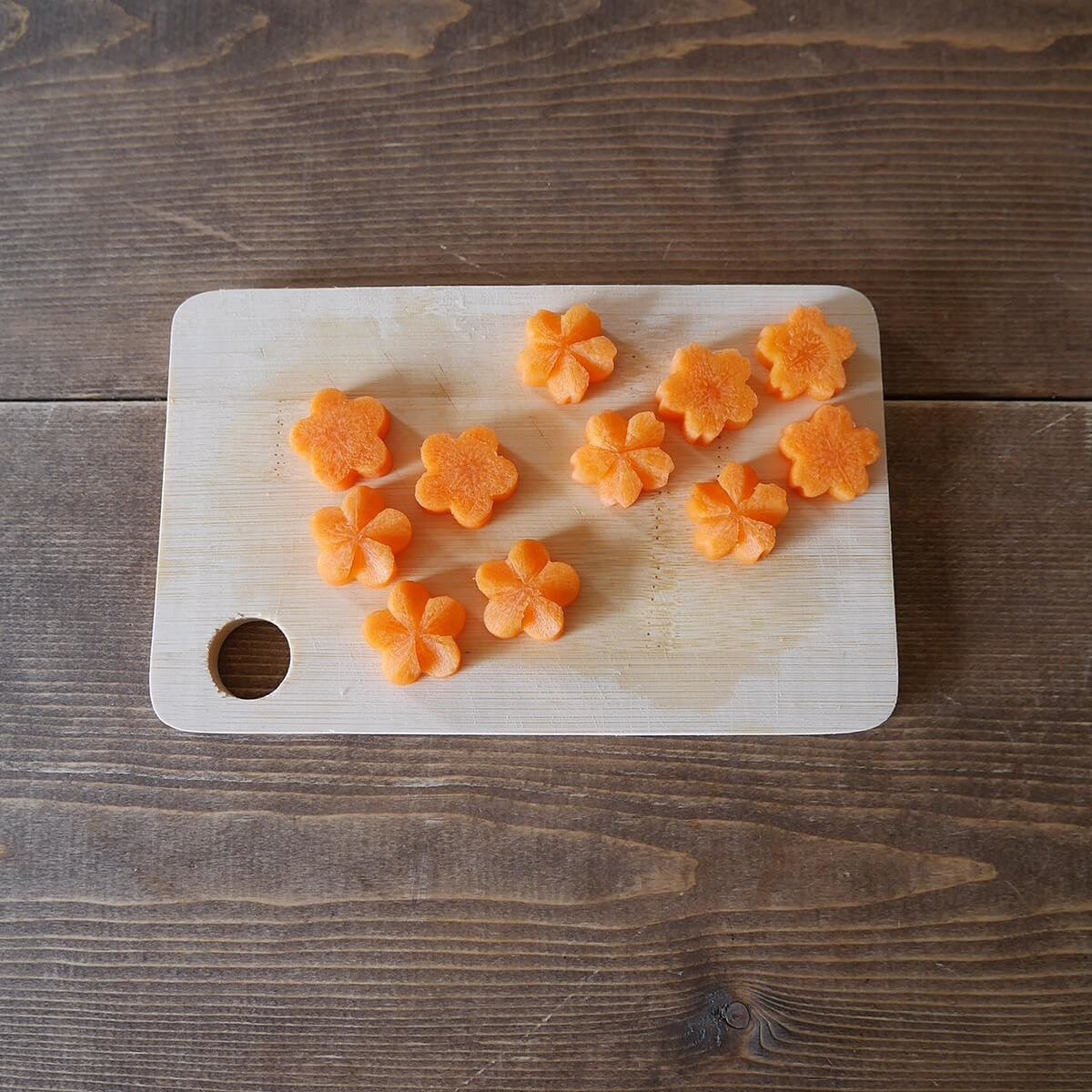 お花の部分は、定番野菜の人参をクッキーの型抜きを使ってお手軽に。