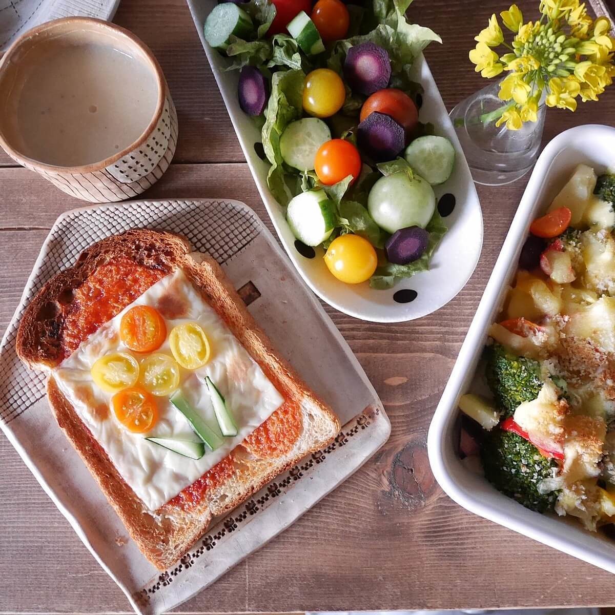 同じ要領でチーズとお花をトーストにのせれば、お花トーストに。