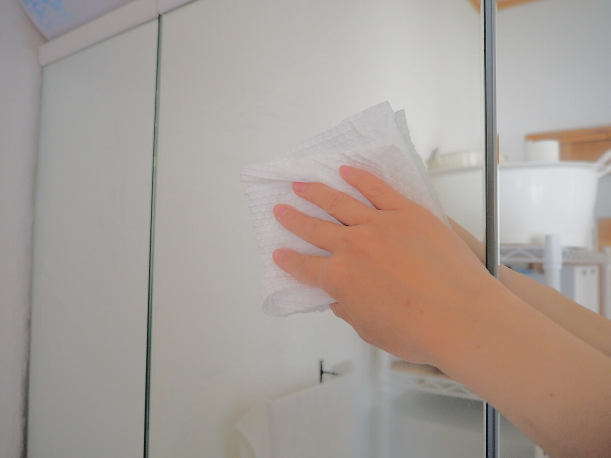 キュキュットクリア泡スプレーは中性洗剤なので、鏡の掃除に効果的なのです。