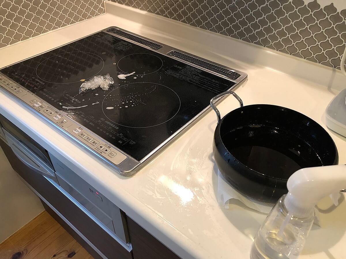 油調理をしたあとの我が家……泡スプレーを直接IH周りに噴射!