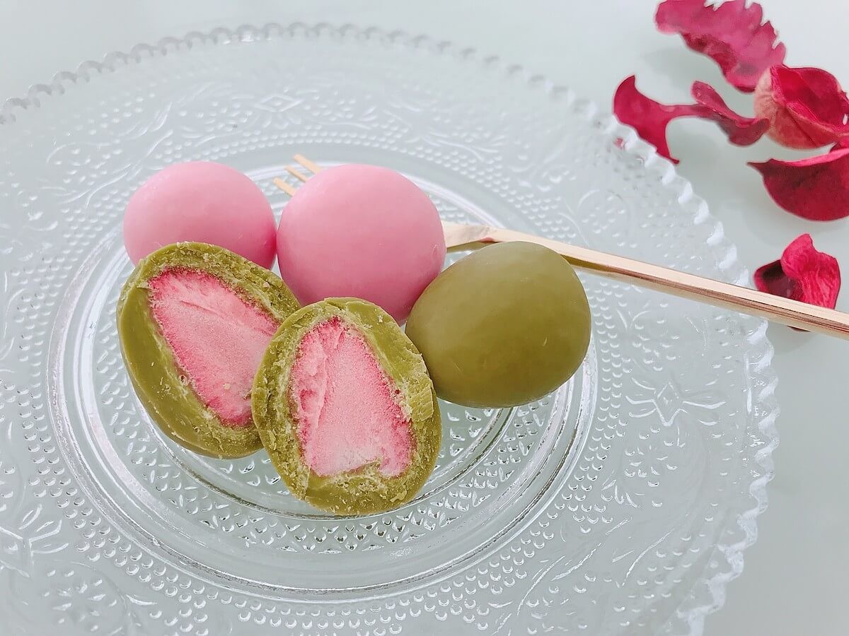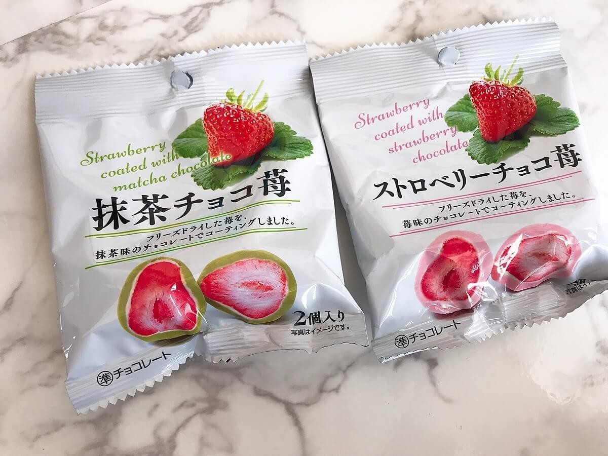 こちらは2個入りなのですが、コーティングのチョコが分厚いので食べ応えもバッチリ。そして抹茶味は抹茶の風味がしっかりしているし、苺の程よい酸味とチョコの甘みが相まってとても美味しかったですよ。