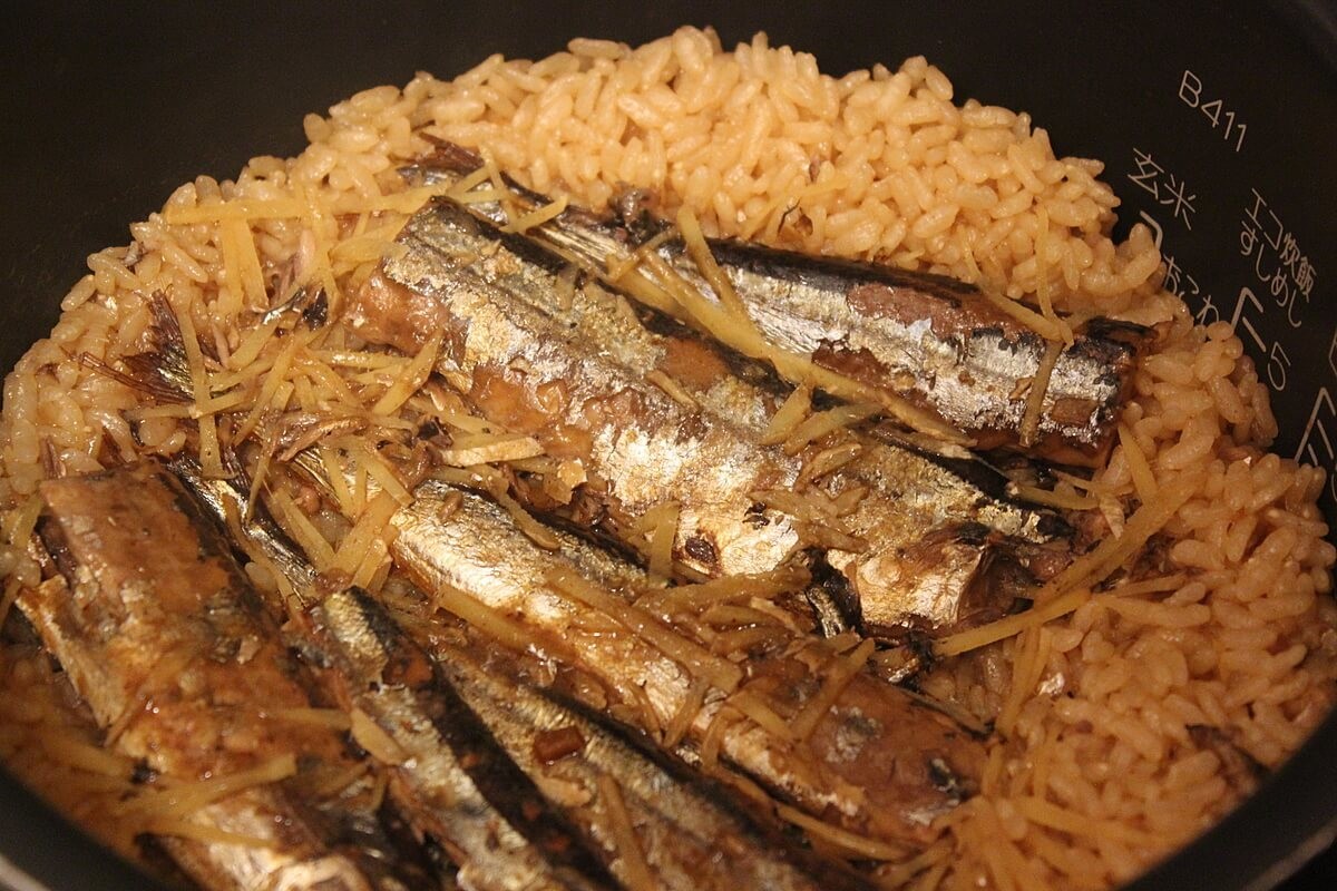 さんまの甘露煮を炊飯器に入れて作る、簡単炊き込みご飯をご紹介します。
