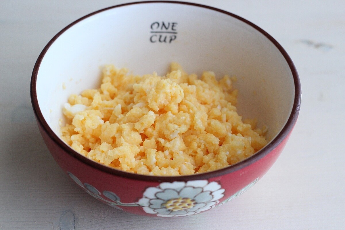 炒り卵は、とりそぼろや鮭フレークと合わせると、とても美味しいですよね♪