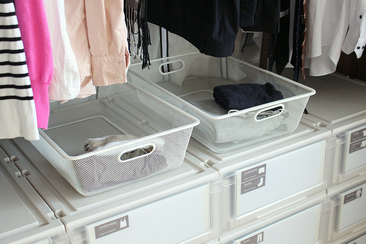 一時置きには、中のモノが見渡せて通気性のよい、浅めのカゴがおすすめです。