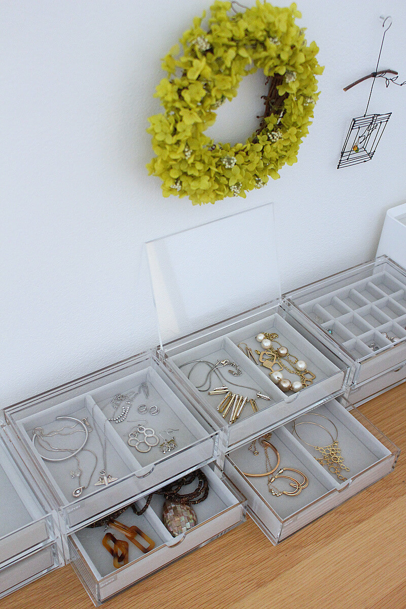 アクセサリーの収納は、指輪、ピアス、ネックレスなど、アイテム別になっている収納用品が多いですが、