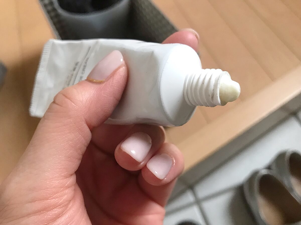 ハンドクリームのような少しサラッとした白いクリームは、少量でもとっても伸びが良いんです。