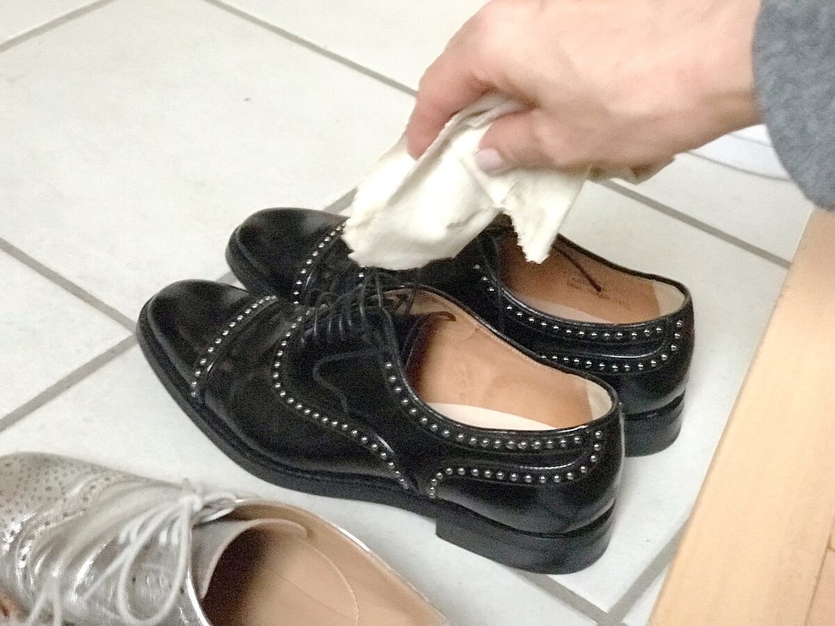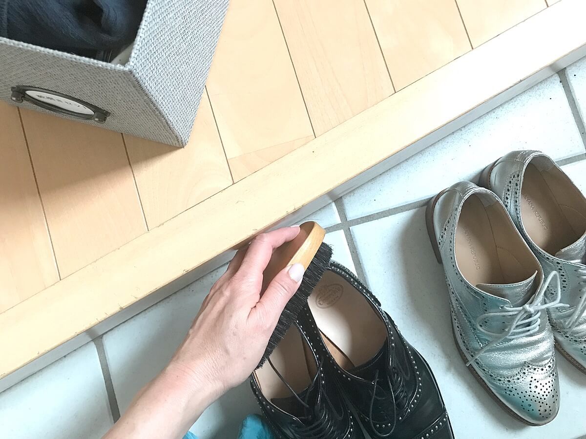 クロスは日々のお手入れに、くつ磨きブラシは週に1度の特別なお手入れに使っています。
