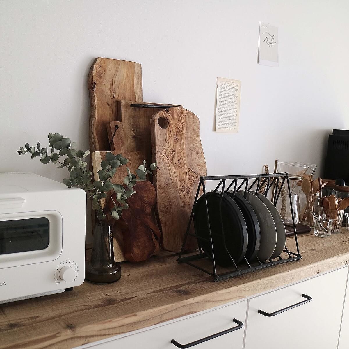 そこでカッティングボードはあえて飾って見せる収納。