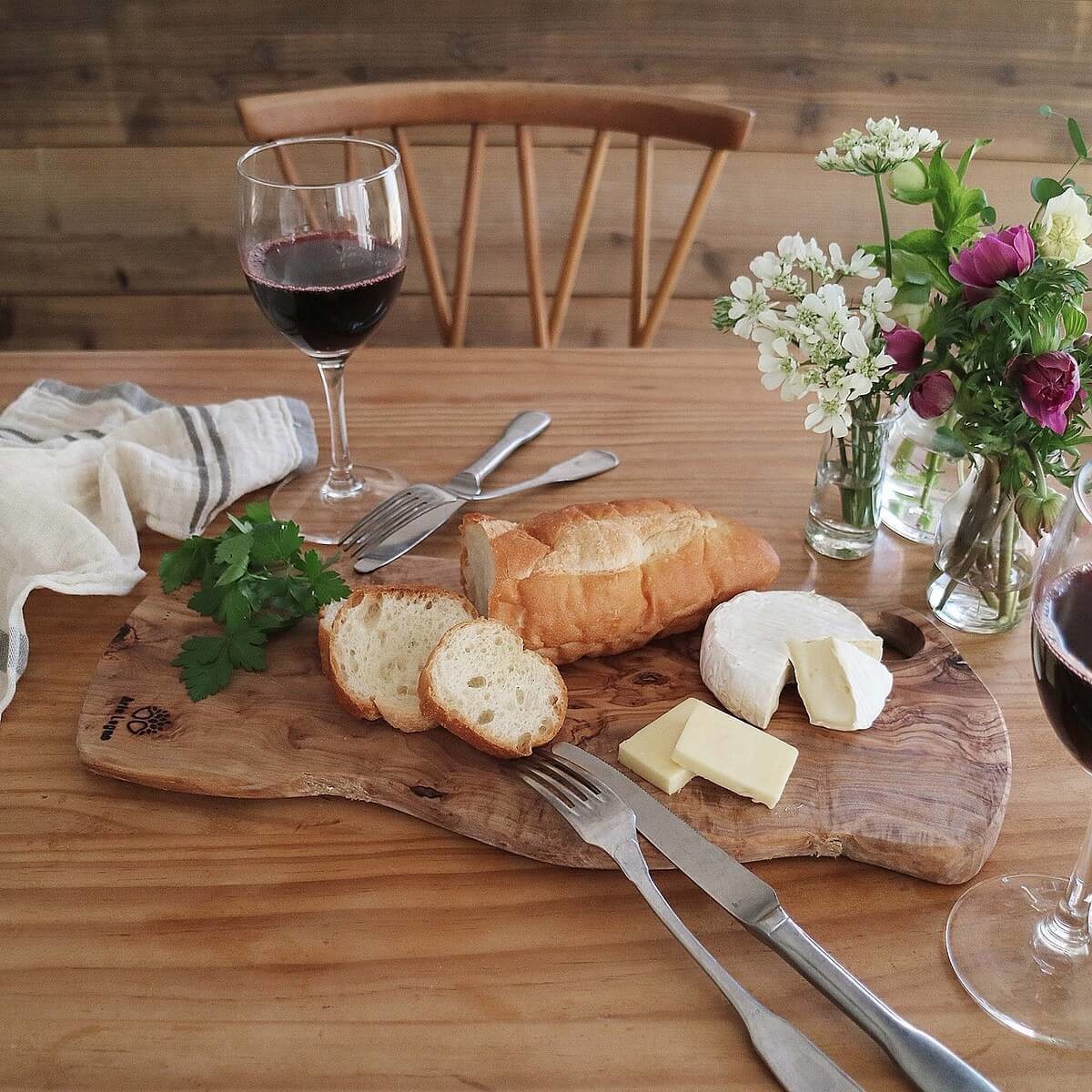 オリーブウッドの個性的な存在感でテーブルが華やかに。