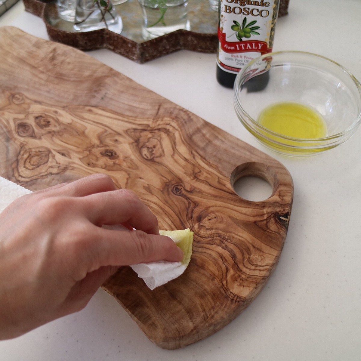 メンテナンスはオイルを含ませたキッチンタオルなどにオイルを含ませて馴染ませていきます。