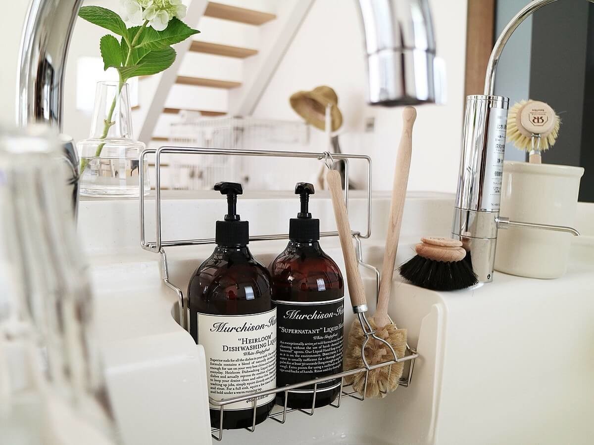 シンクには、おしゃれなフォルムのマチーソンヒュームのハンドソープと、ディッシュソープを。