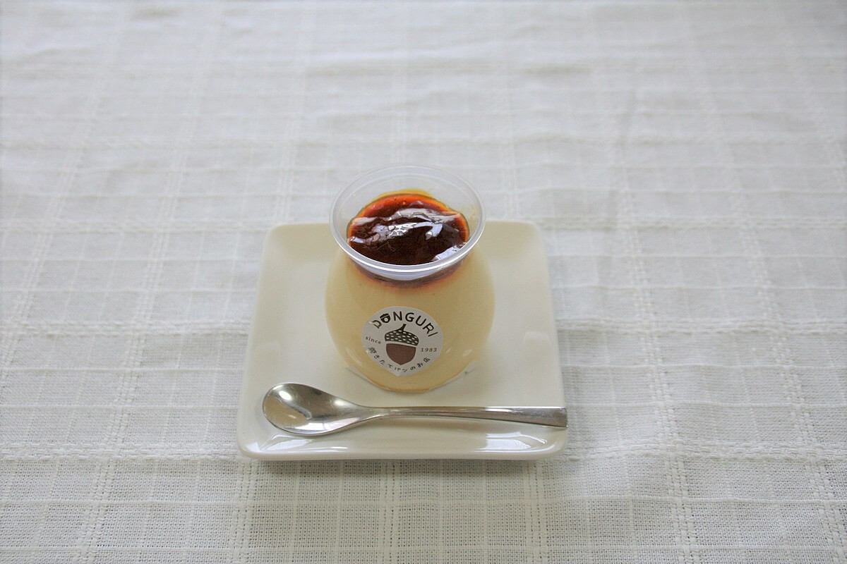 ころんとした可愛いつぼ形の容器にたっぷりと入ったプリンです。