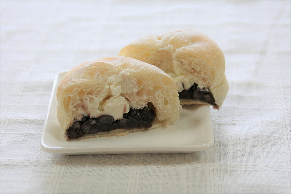 少し塩気のきいたふわふわとした真っ白いパンの中に、生クリームとつぶあんが入っています。
