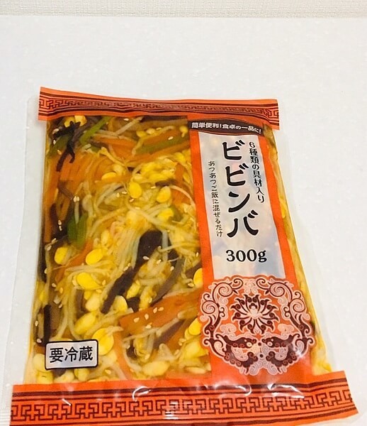 大豆もやし、人参、きくらげ、芋つる、ぜんまい、せりと6種類の野菜が入ったビビンバの具材は、ご飯に混ぜるだけではなく、ちょっとしたおつまみにもおすすめです。