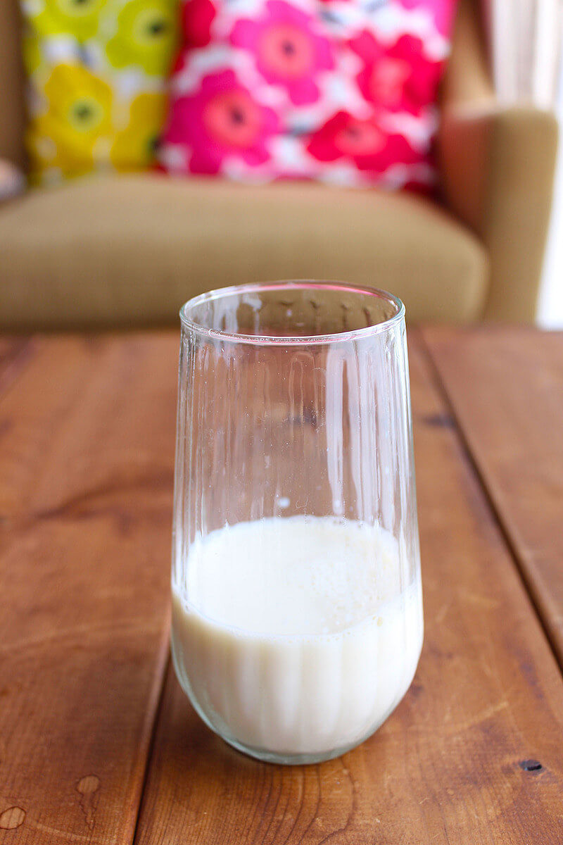 作り方 (1)グラスに豆乳を注ぎます。