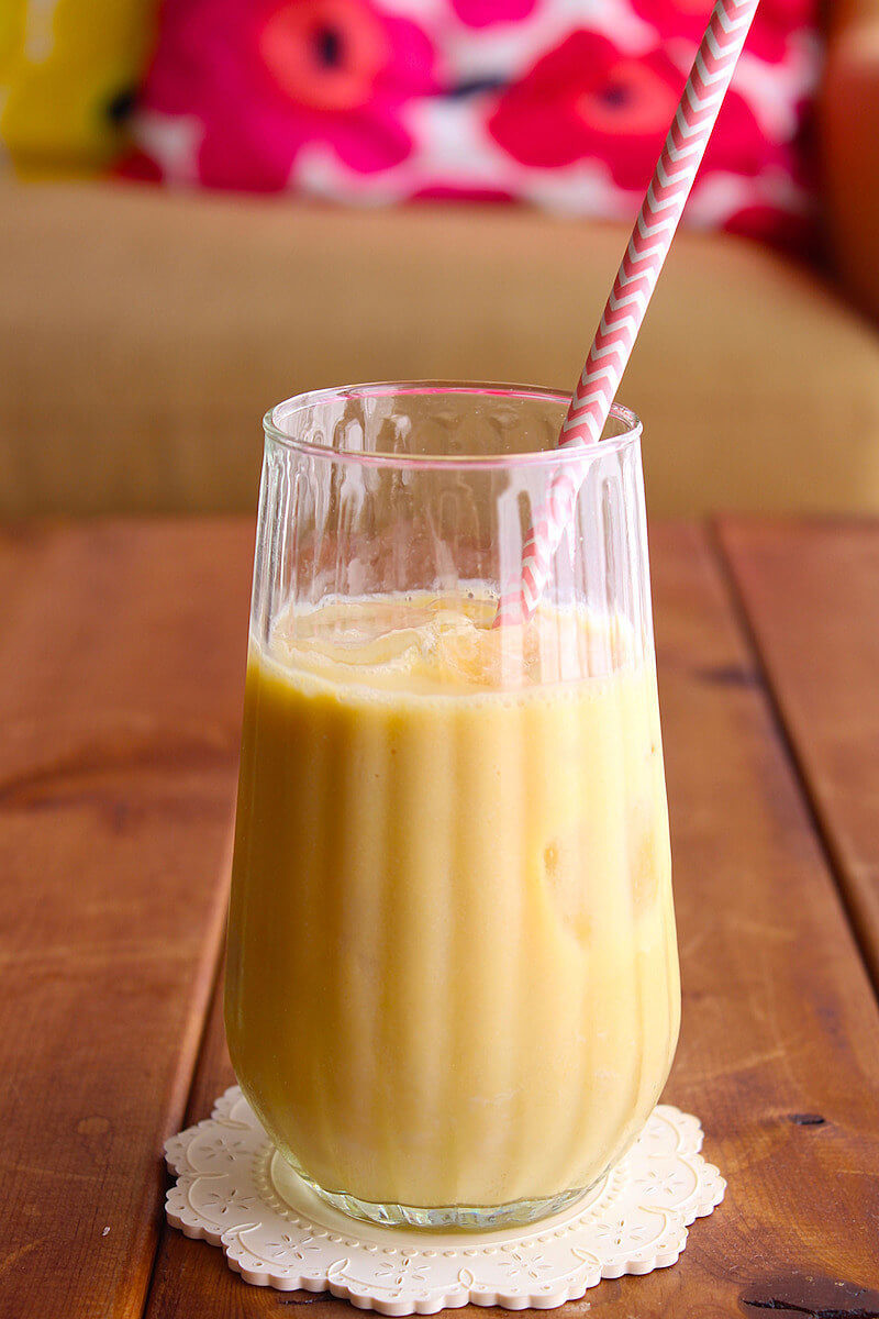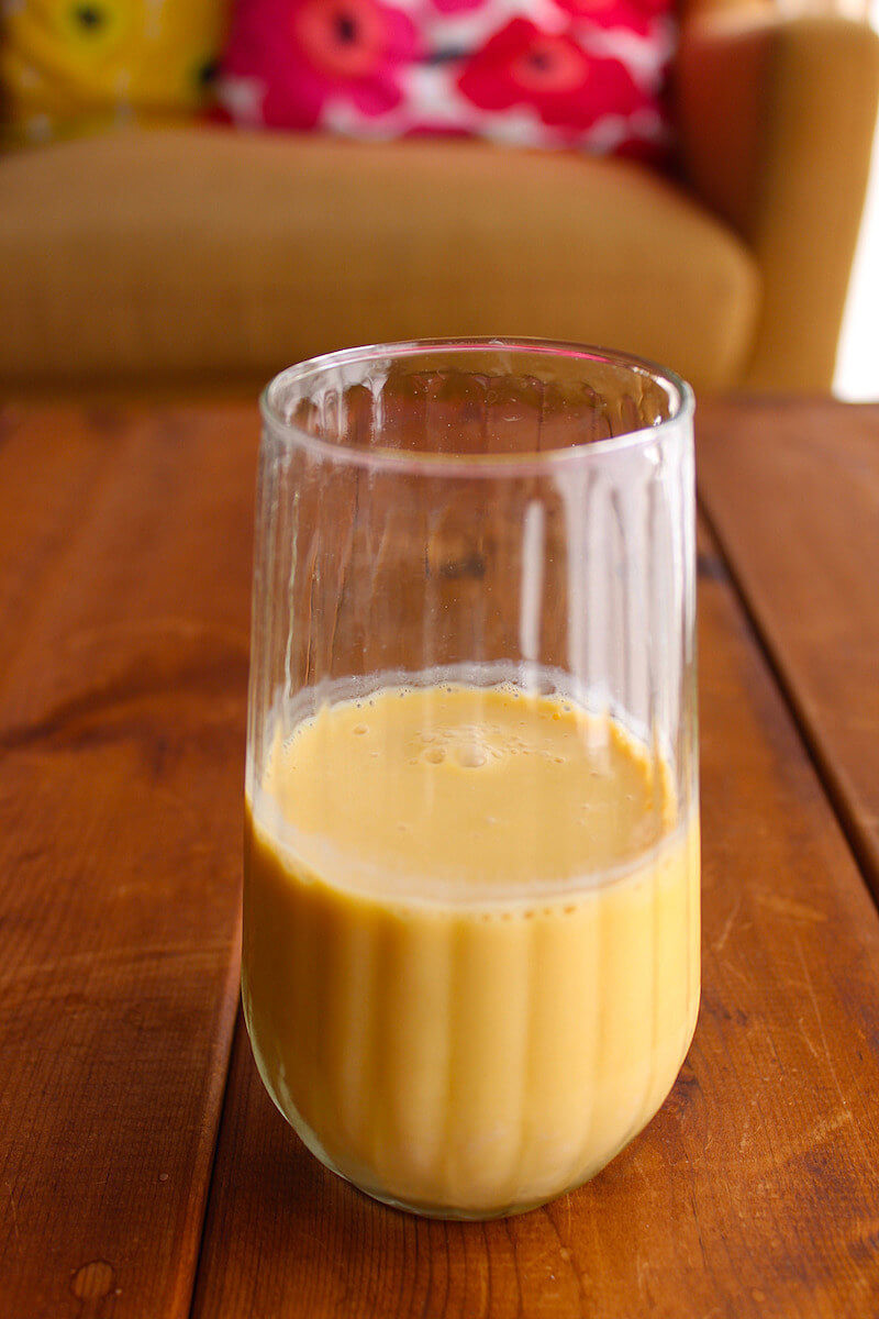 今回は、砂糖不使用のマンゴーピューレと無調整豆乳を使用しているため、砂糖をプラスしましたが、調整豆乳や