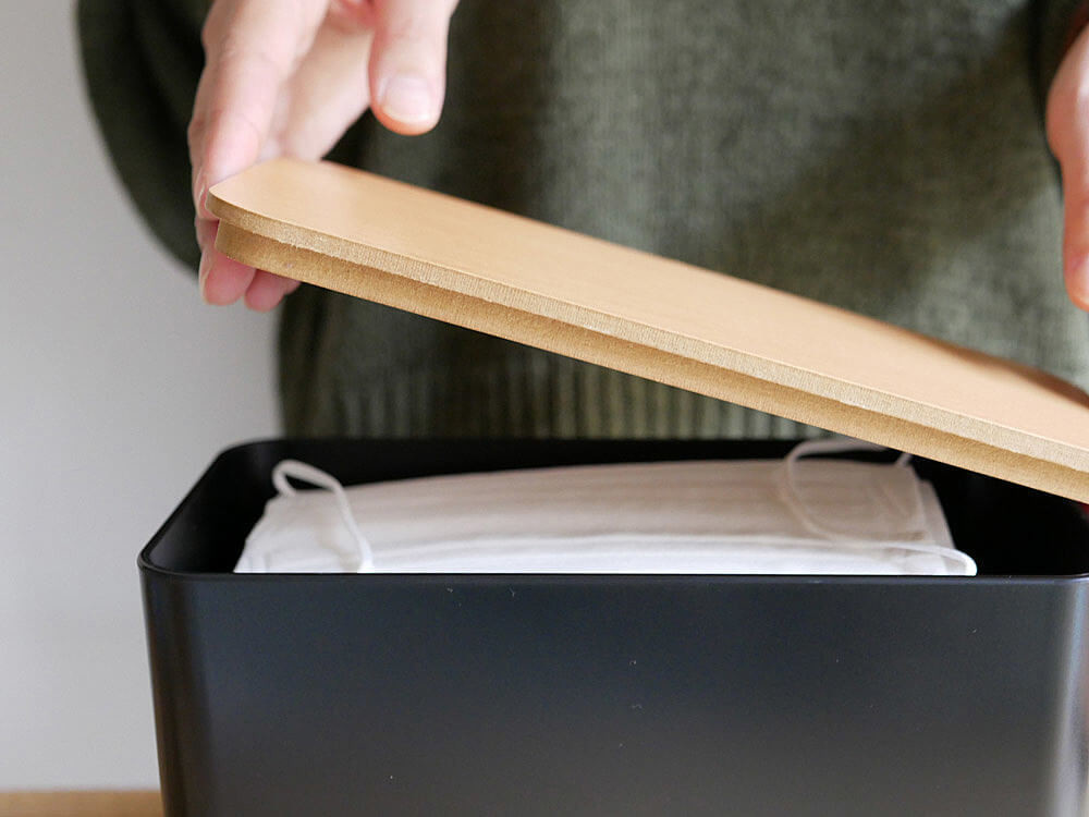 ウッド素材の蓋で、シンプルな中にもナチュラルさをプラス。 片手でさっと開けられるので、残量確認も簡単です。