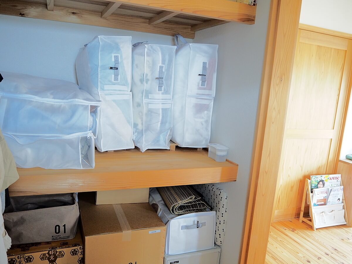 布団バッグを使うようになってから、布団を立てて収納することも可能になり、収納場所の省スペース化を図れるようになりました!