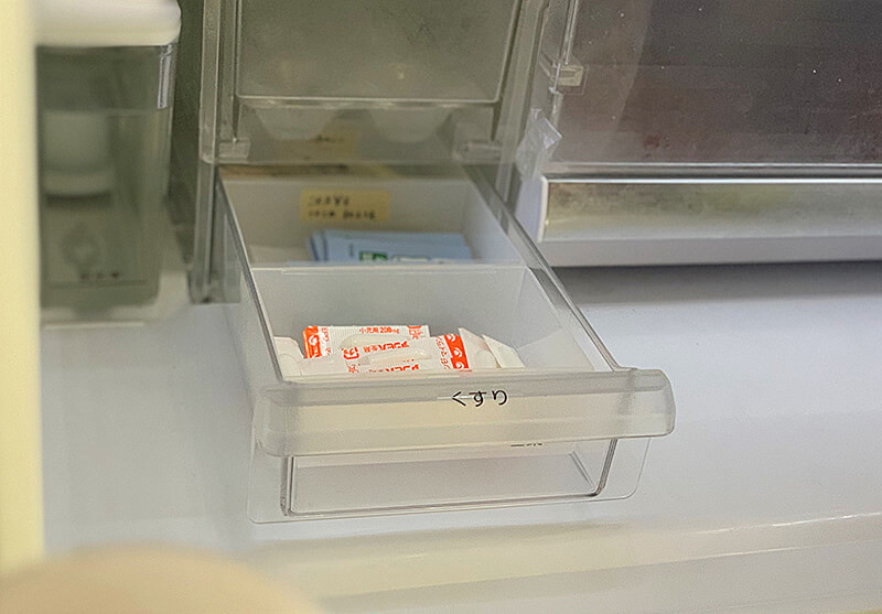 飲み薬は水と一緒に飲むものなので、キッチンの近くに収納しています。