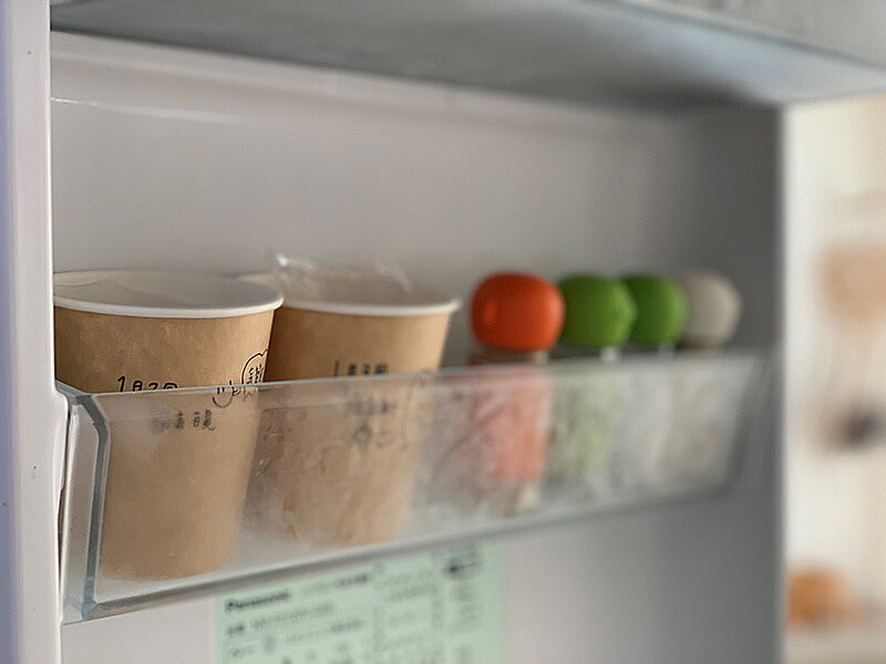 冷蔵庫はゼリーなど混ぜこむものと同じ場所。