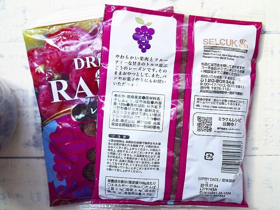 業務スーパーで販売されているレーズンは、120g入りで88円(税抜)。