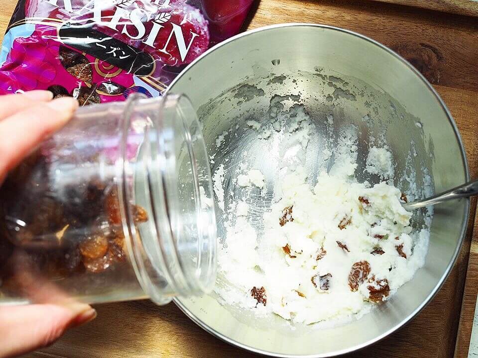 いつものクッキー生地に、お好みの量のレーズンを入れるだけでOK!