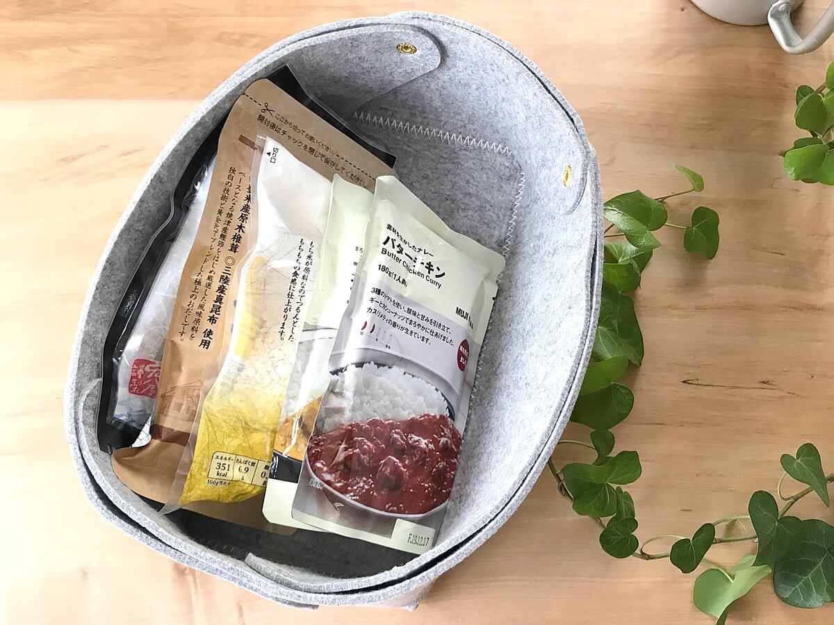 乾物やお菓子、レトルトなど種類別に分けて入れても分かりやすいですね。