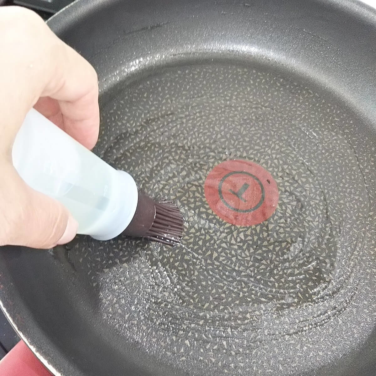 このダイソーのオイルひきを使えば、薄く油をひくことができます。
