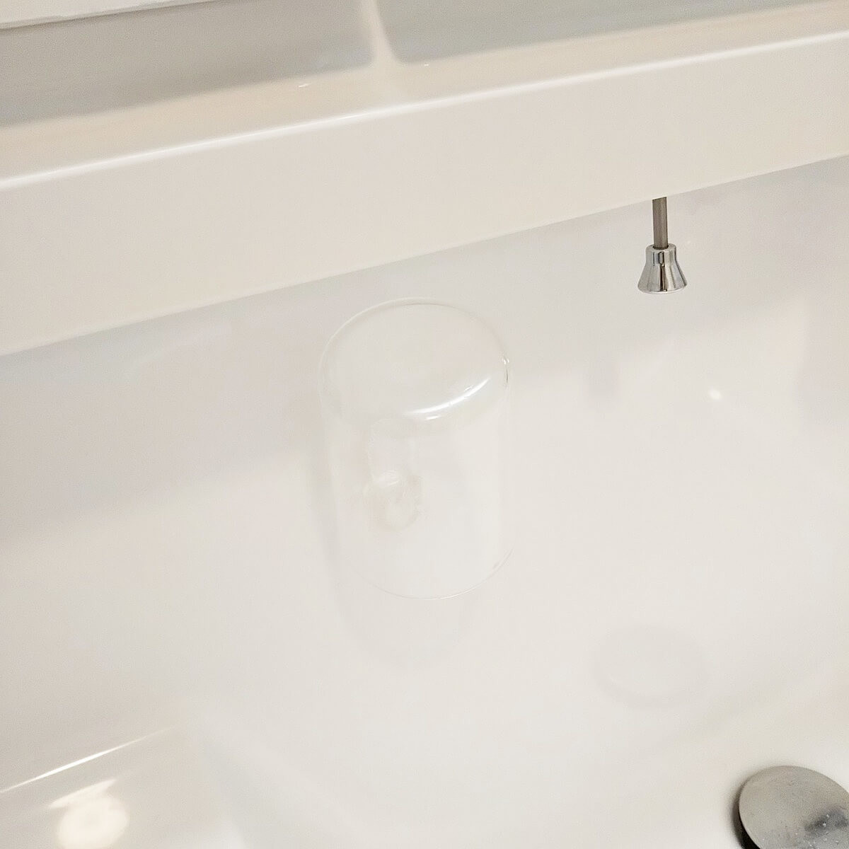 洗面所のコップは下に置くと、水がたまり汚れやすくなります。掃除をする時も持ち上げたり底を拭いたりしなければいけません。