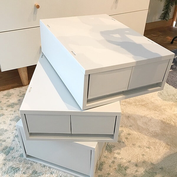 無印良品のポリプロピレンケースのホワイトグレーの引き出し。