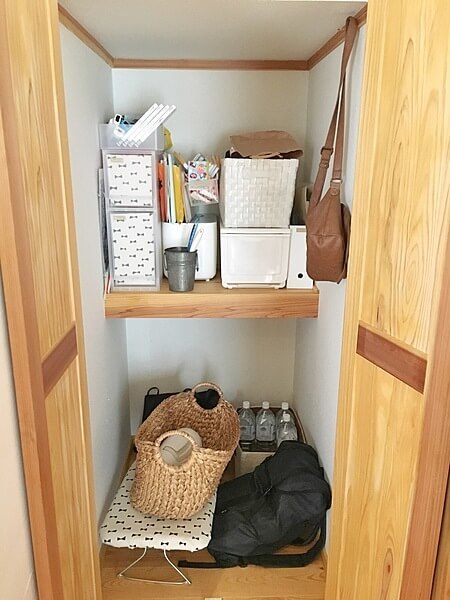 来客があっても扉を閉めるだけで生活感を隠すことができるので、見せる収納が苦手な方にはピッタリの収納方法ですね!