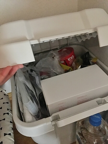 黒いリュックに防災グッズを収納していたのですが、定期的に中身をチェックしやすいようにリュックから出しました。