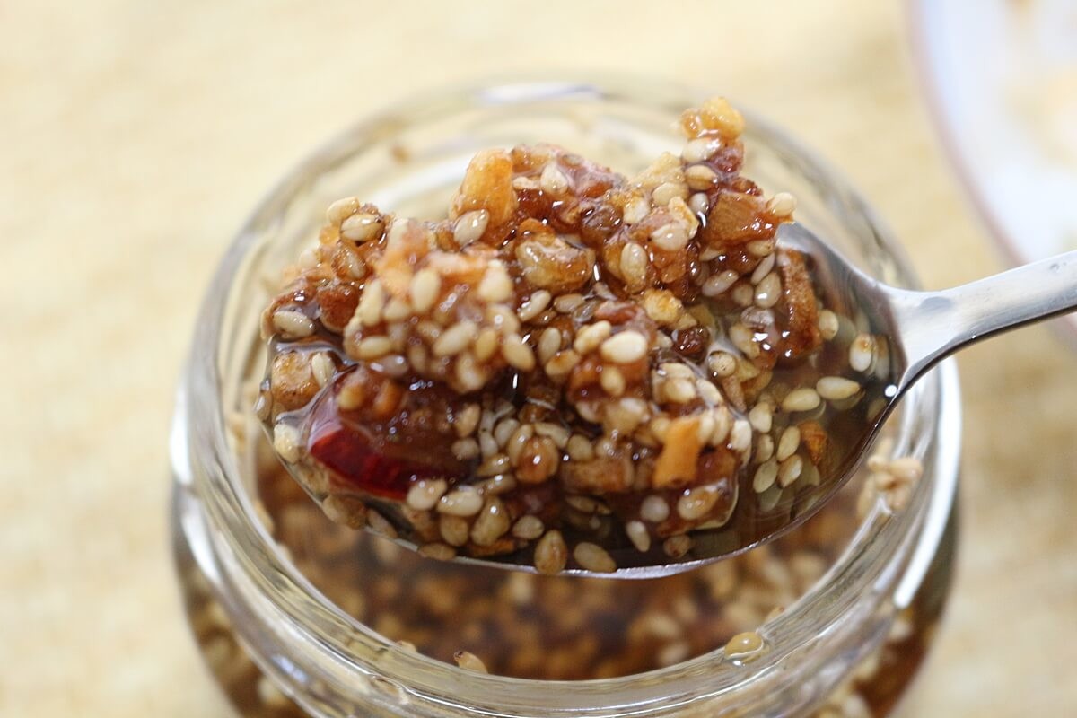 ゴロッとしたフライドガーリックの食感はもちろん、ごまの食感と風味が香ばしいですですが、”ごま油”だけで食べるのは、しんどいと感じる方もいるかもしれません(笑)。