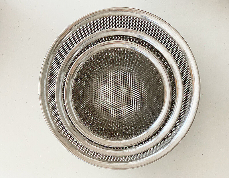 野菜を洗って、パンチングストレーナーを合わせたボウルに一時置きしておくと、勝手に水切りをしてくれる。