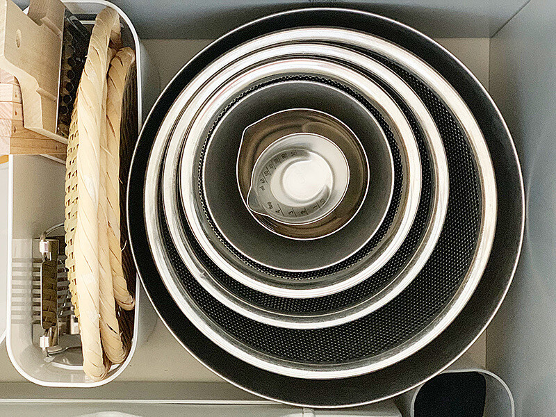 柳宗理のステンレスボウルなら、積んでもかさばらないから。