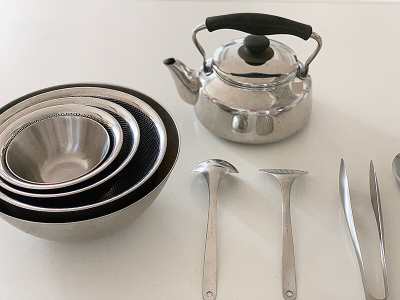そんななか、暮らし上手さんの台所で多く目にするのが、柳宗理のキッチンツールです。