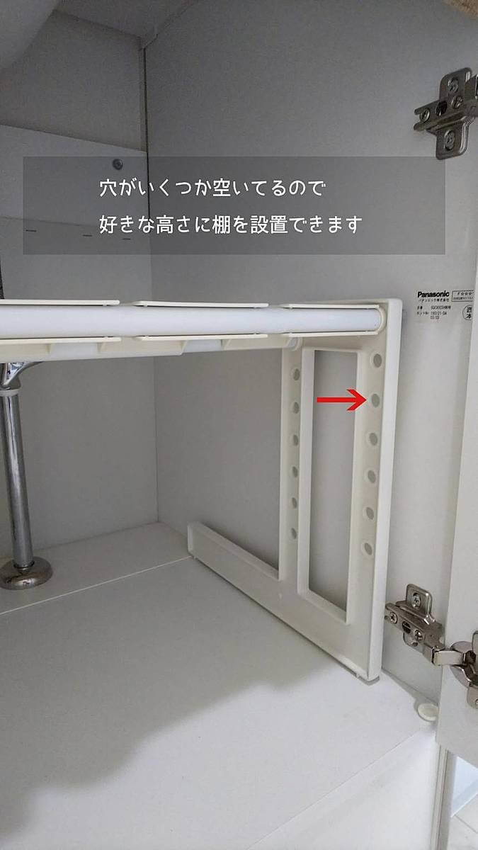 棚の高さは調節可能になっているので収納したい物の高さによって高くしたり低くしたりできます。