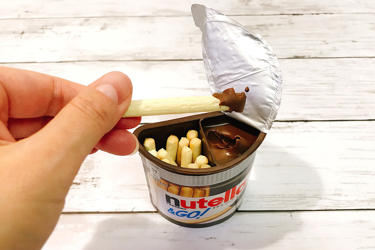 ヘーゼルナッツとココアクリームを混ぜたスプレッドを、素朴な味のスティッククラッカーですくって食べる「ヌテラ&ゴー」。我が家では自分のために買ったのに小学生の娘に独占されています……。