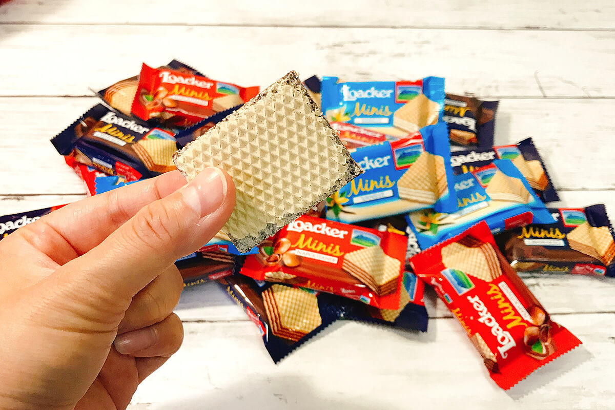 「ローカー ミニズアソート」は、ウエハースとクリームの組み合わせが絶妙なローカーのウエハースが3種類入ったアソート版です。3種類の内訳はヘーゼルナッツクリームのナポリタン、私が大好きなクリームカカオ、水色のパッケージが目を引くバニラです。ベーシックな組み合わせですよね。