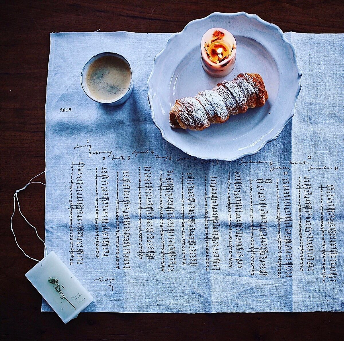 大好きなcard-yaさんのアンティークリネンに描かれたカレンダー。