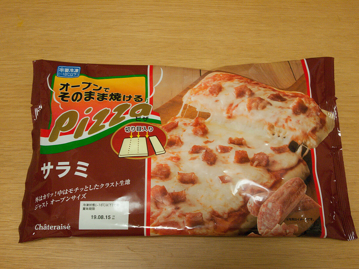 外はサクッ、中はふんわりとしたクラストに、シャトレーゼ自社製のトマトソースにチーズ、サラミソーセージがトッピングされています。